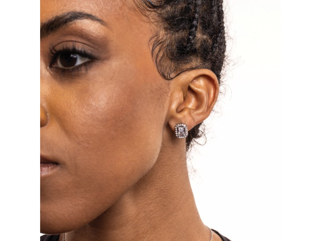 Dámske náušnice z chirurgickej ocele BRAND z kolekcie Royal s čírymi zirkónom a malými čírymi zirkónmi sú dodávané v originálnej krabičke. Lesk Star je autorizovaným predajcom BRAND.