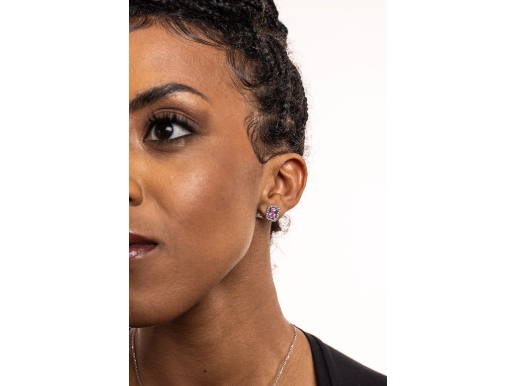 Dámske náušnice z chirurgickej ocele BRAND z kolekcie Royal s ružovým zirkónom a malými čírymi zirkónmi sú dodávané v originálnej krabičke. Lesk Star je autorizovaným predajcom BRAND.