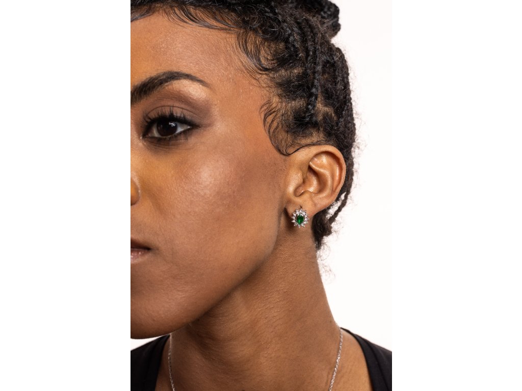 Dámske náušnice z chirurgickej ocele BRAND z kolekcie Royal so zeleným zirkónom a malými čírymi zirkónmi sú dodávané v originálnej krabičke. Lesk Star je autorizovaným predajcom BRAND.