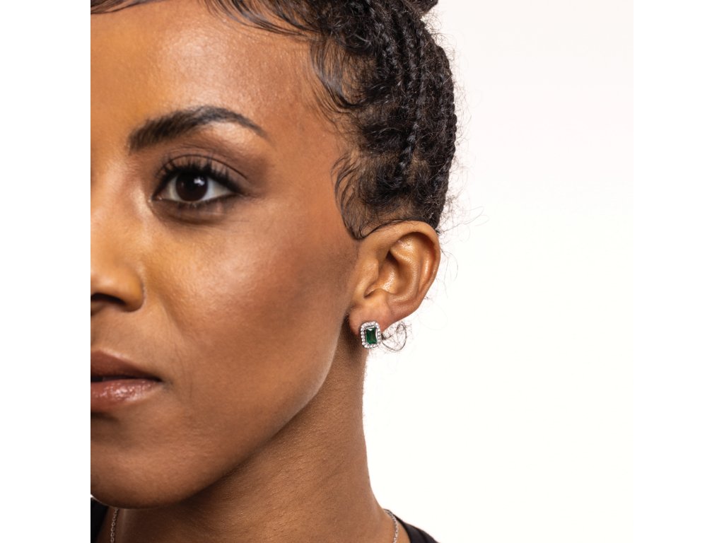 Dámske náušnice z chirurgickej ocele BRAND z kolekcie Royal so zeleným zirkónom a malými čírymi zirkónmi sú dodávané v originálnej krabičke. Lesk Star je autorizovaným predajcom BRAND.