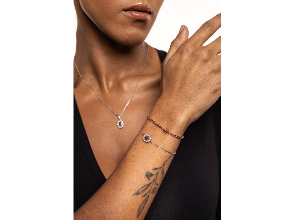 Dámsky náramok z chirurgickej ocele BRAND z kolekcie Royal s červeným zirkónom a malými čírymi zirkónmi je dodávaný v originálnej krabičke. Lesk Star je autorizovaným predajcom BRAND.