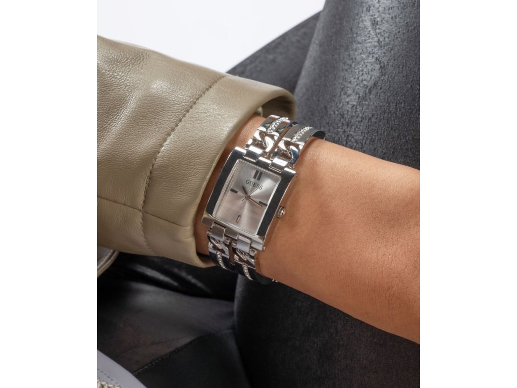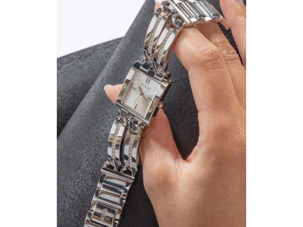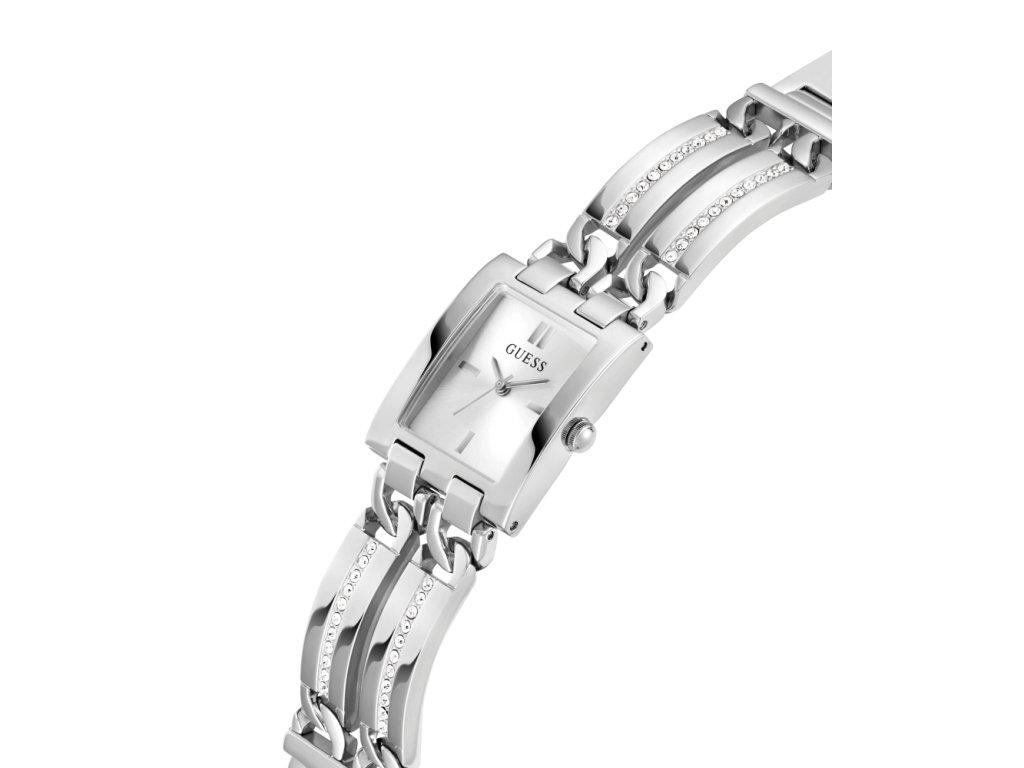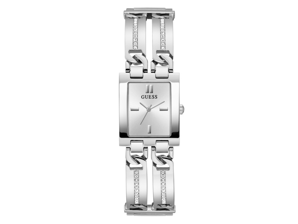 Dámske hodinky GUESS Mod ID z nerezovej ocele strieborné so strieborným ciferníkom zdobené zirkónmi sú dodávané v originálnej krabičke. Lesk Star je autorizovaným predajcom Guess.