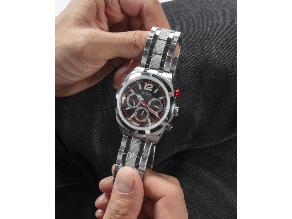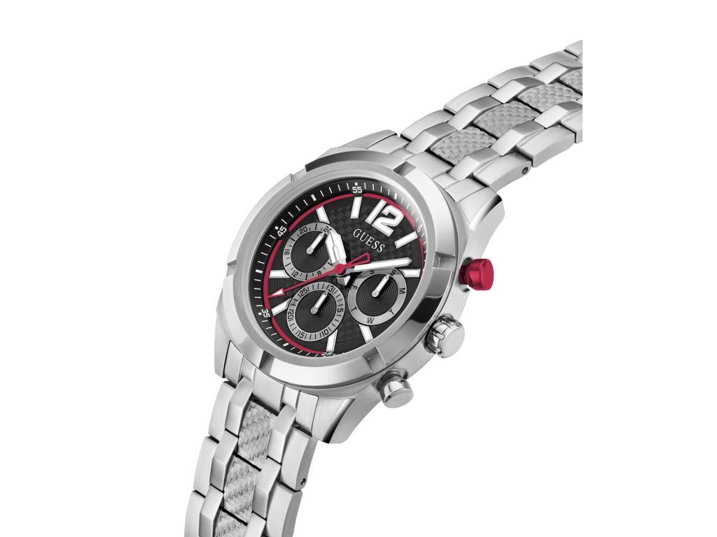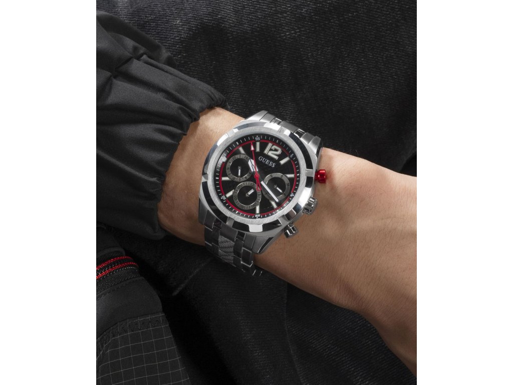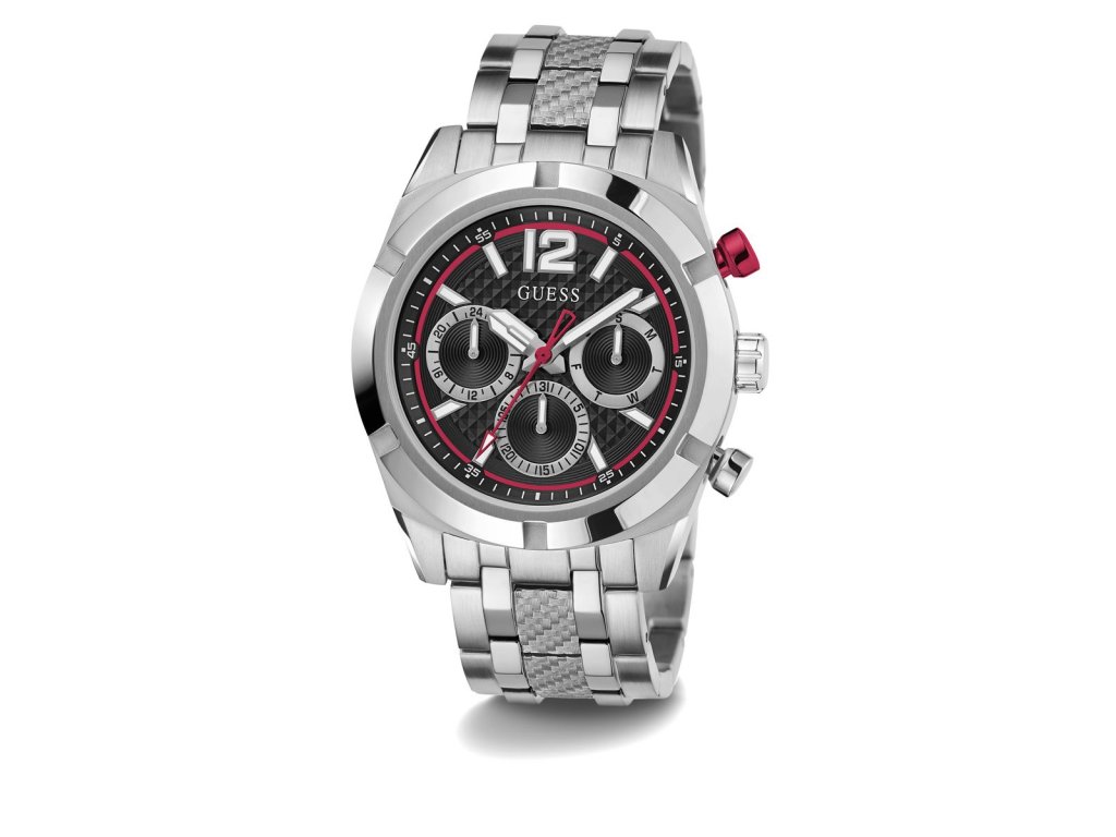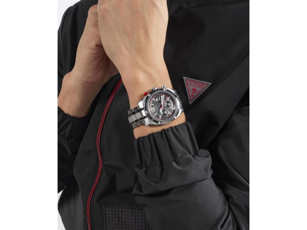 Pánske hodinky GUESS Resistance z nerezovej ocele strieborné s čiernym ciferníkom sú dodávané v originálnej krabičke. Lesk Star je autorizovaným predajcom Guess.