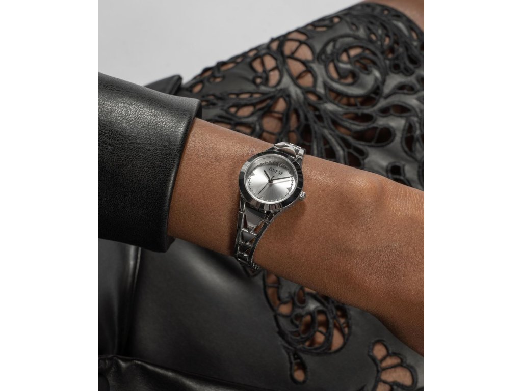 Dámske hodinky GUESS Tessa z nerezovej ocele strieborné so strieborným ciferníkom sú dodávané v originálnej krabičke. Lesk Star je autorizovaným predajcom Guess.