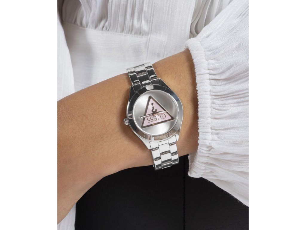 Dámske hodinky GUESS Tri Plaque z nerezovej ocele strieborné so strieborným ciferníkom a ružovým logom Guess sú dodávané v originálnej krabičke. Lesk Star je autorizovaným predajcom Guess.