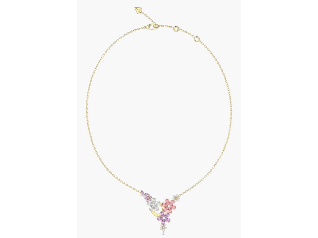 Dámsky náhrdelník GUESS Lily z chirurgickej ocele v zlatej farbe je výrazný a ženský doplnok s bohatým dekorom. Prívesok zdobený zirkónmi v tvare kvetov a motýľov pôsobí romanticky a elegantne, doplnený o gravírované logo Guess. Náhrdelník je dodávaný v originálnej krabičke. Lesk Star je autorizovaným predajcom Guess.