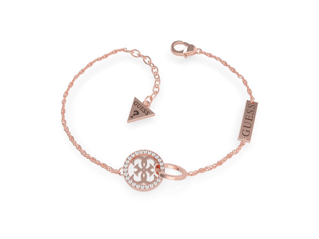 Dámsky náramok GUESS Equilibre z chirurgickej ocele s príveskom a logom je dodávaný v originálnej krabičke. Lesk Star je autorizovaným predajcom Guess.