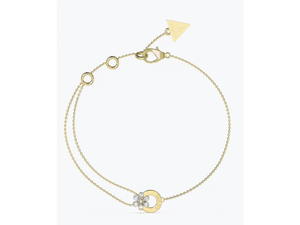 Dámsky náramok GUESS Lily z chirurgickej ocele v zlatej farbe je jemný, no zároveň výrazný doplnok. Dvojitá retiazka je doplnená o prívesok v tvare kvetov a motýľov zdobený zirkónmi s gravírovaným logom Guess. Náramok je dodávaný v originálnej krabičke. Lesk Star je autorizovaným predajcom Guess.