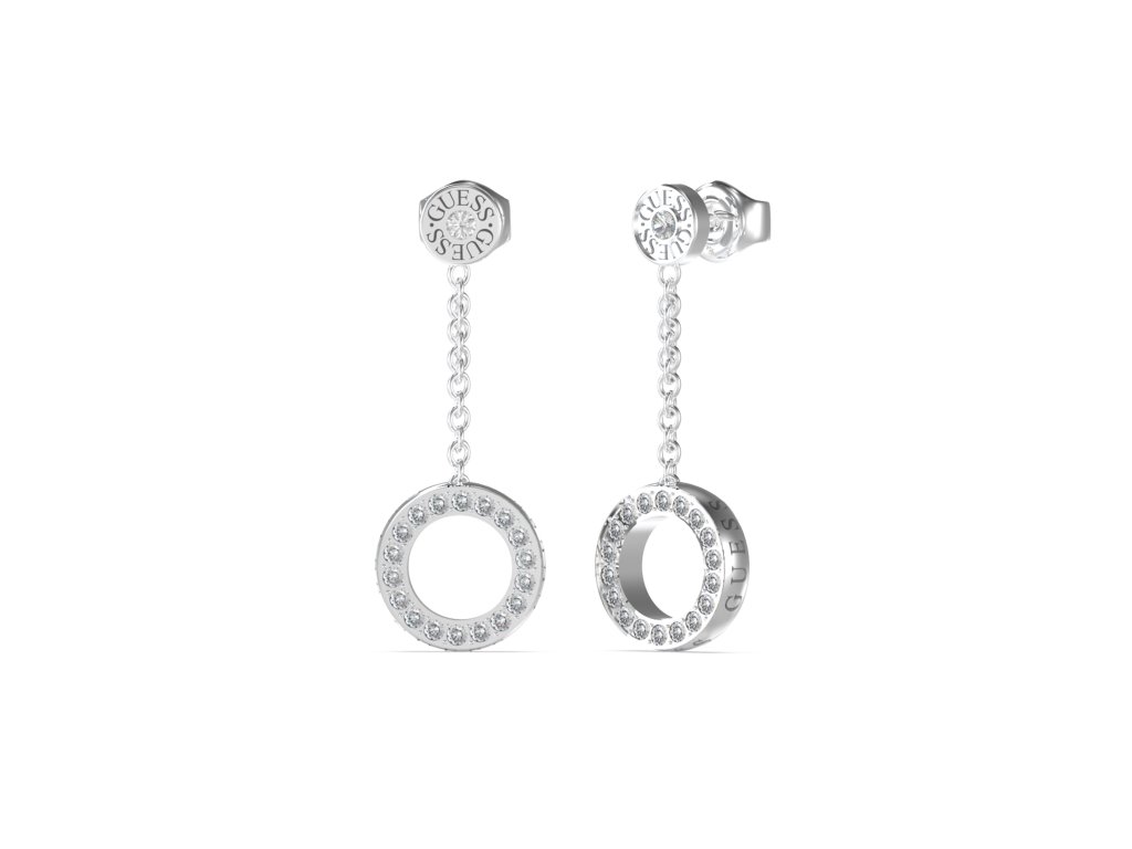 Dámske náušnice GUESS Circle Lights z chirurgickej ocele s čírymi zirkónmi sú dodávané v originálnej krabičke. Lesk Star je autorizovaným predajcom Guess.