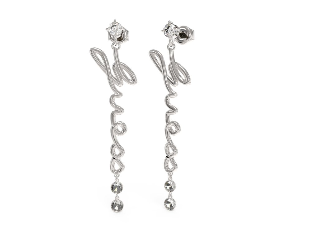 Dámske náušnice GUESS Say My Name z chirurgickej ocele s čírymi zirkónmi sú dodávané v originálnej krabičke. Lesk Star je autorizovaným predajcom Guess.