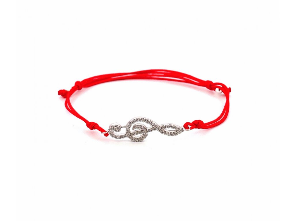 Dámsky šnúrkový náramok s husľovým kľúčom zdobený čírymi zirkónmi zo striebra so zaťahovacím zapínaním. Náramok je dodávaný v darčekovej krabičke.