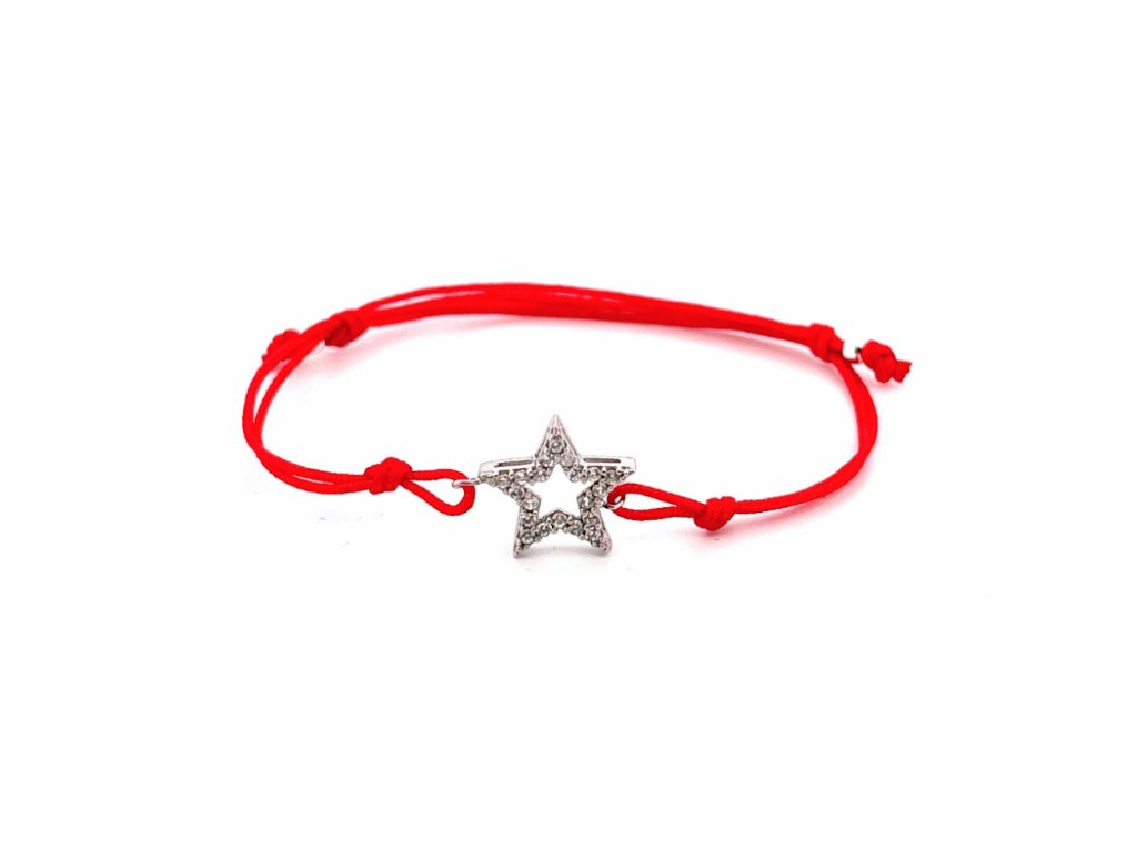 Dámsky šnúrkový náramok s hviezdou zdobený čírymi zirkónmi zo striebra so zaťahovacím zapínaním. Náramok je dodávaný v darčekovej krabičke.