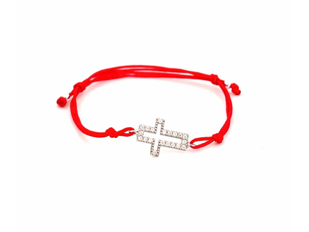 Dámsky šnúrkový náramok s krížikom zdobený čírymi zirkónmi zo striebra so zaťahovacím zapínaním. Náramok je dodávaný v darčekovej krabičke.