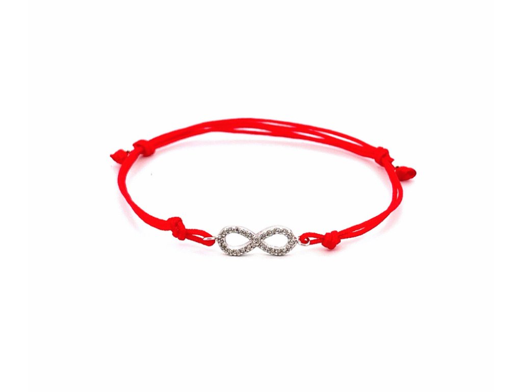 Dámsky šnúrkový náramok s nekonečnom zdobený čírymi zirkónmi zo striebra so zaťahovacím zapínaním. Náramok je dodávaný v darčekovej krabičke.