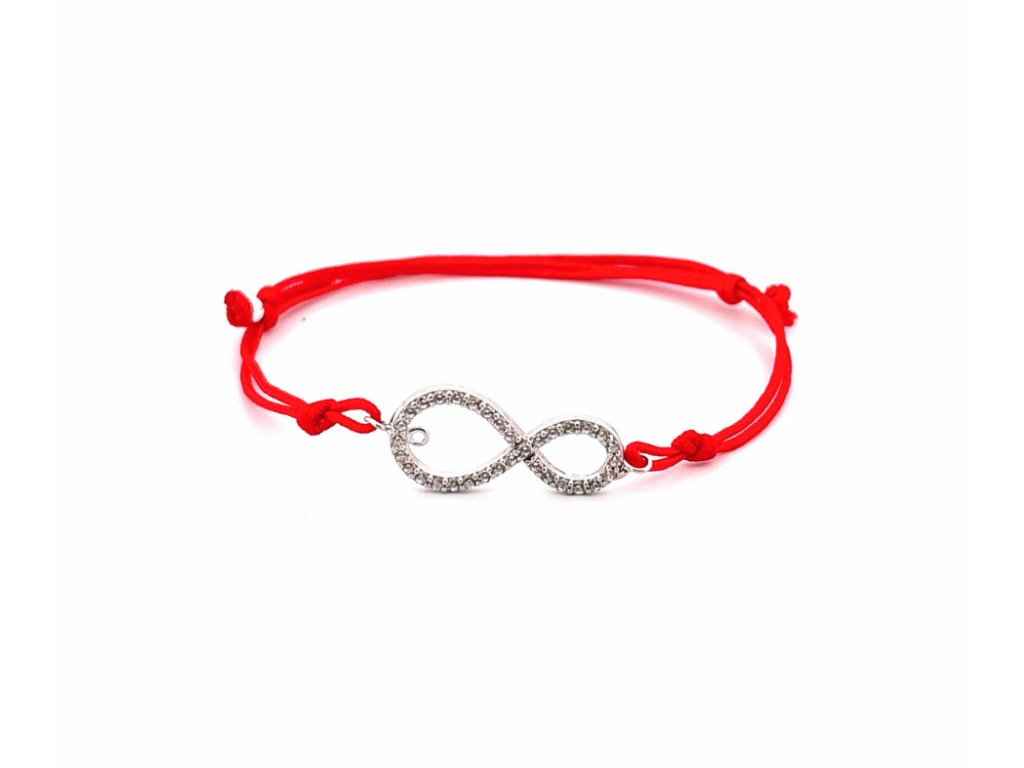 Dámsky šnúrkový náramok s nekonečnom zdobený čírymi zirkónmi zo striebra so zaťahovacím zapínaním. Náramok je dodávaný v darčekovej krabičke.