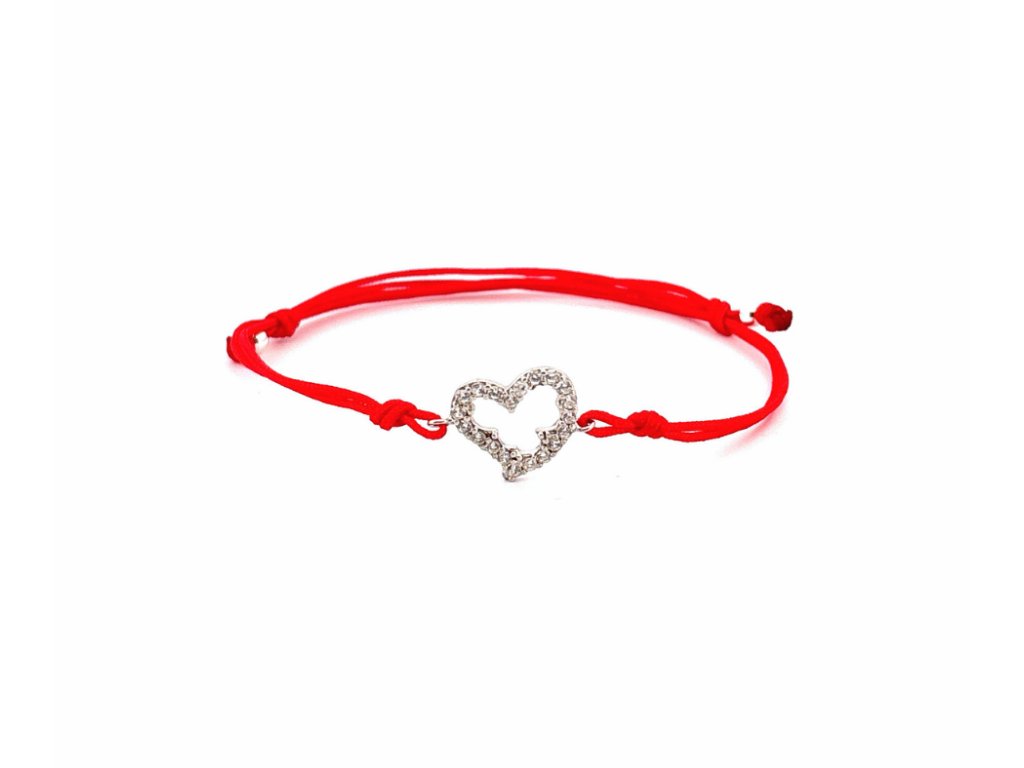 Dámsky šnúrkový náramok so srdiečkom zdobený čírymi zirkónmi zo striebra so zaťahovacím zapínaním. Náramok je dodávaný v darčekovej krabičke.