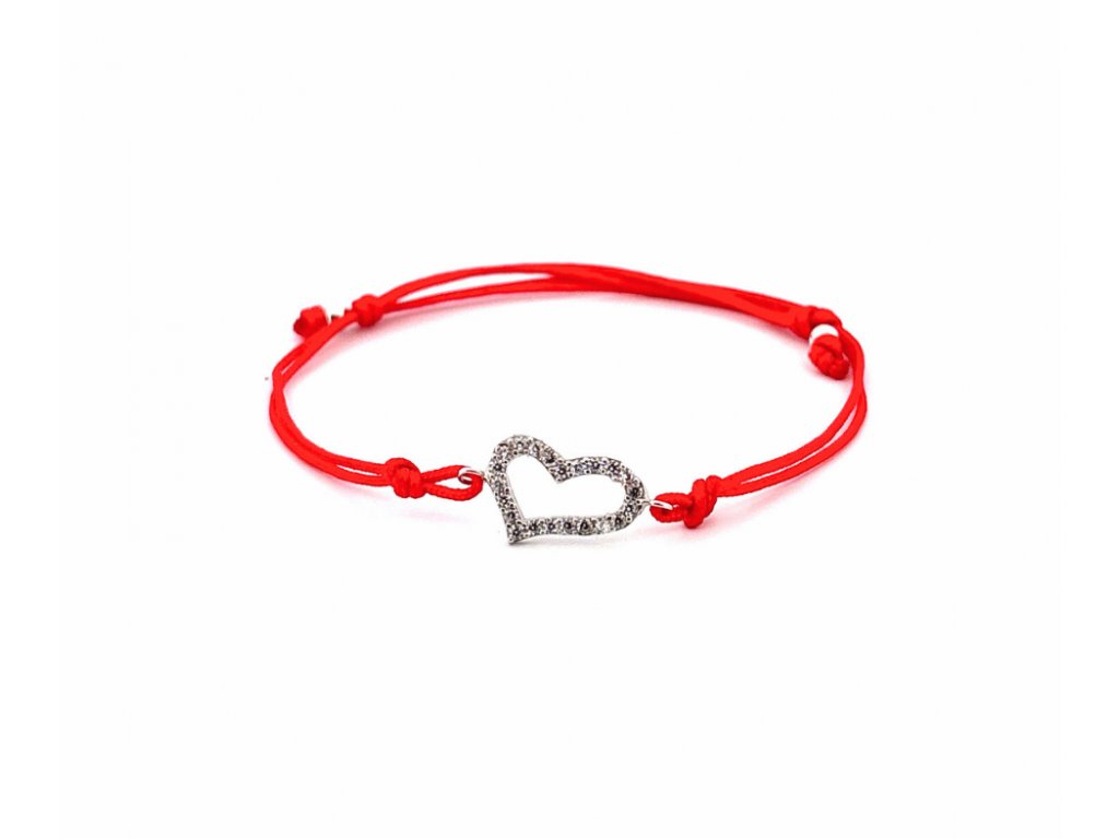 Dámsky šnúrkový náramok so srdiečkom zdobený čírymi zirkónmi zo striebra so zaťahovacím zapínaním. Náramok je dodávaný v darčekovej krabičke.