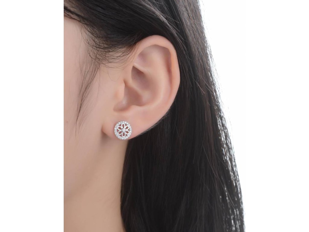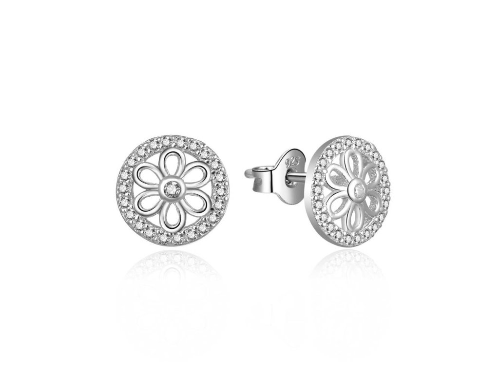 Strieborné náušnice kvetinky zdobené čírymi zirkónmi E0003008