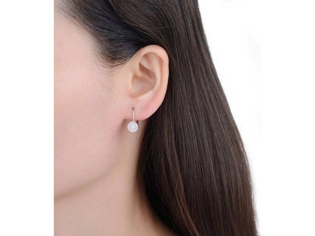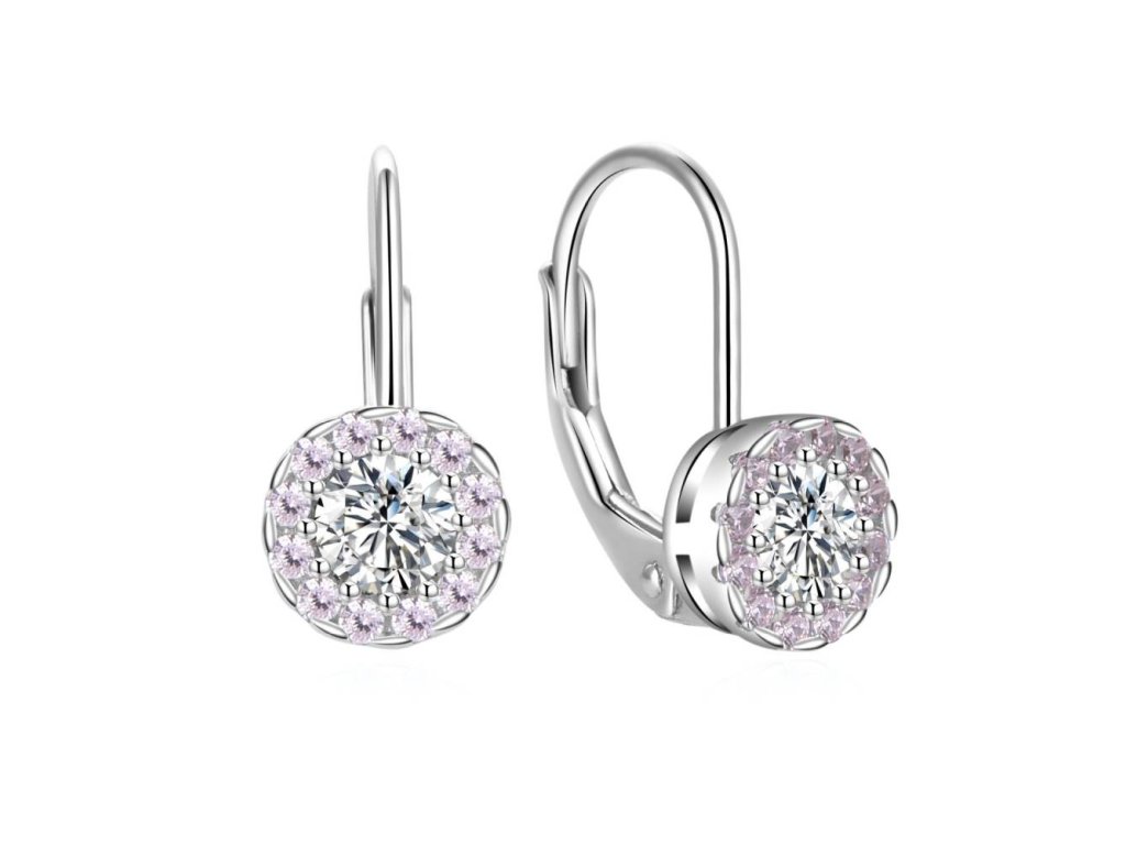 Dámske strieborné náušnice s veľkým čírym zirkónom a malými ružovými zirkónmi zo striebra sú dodávané v darčekovej krabičke.