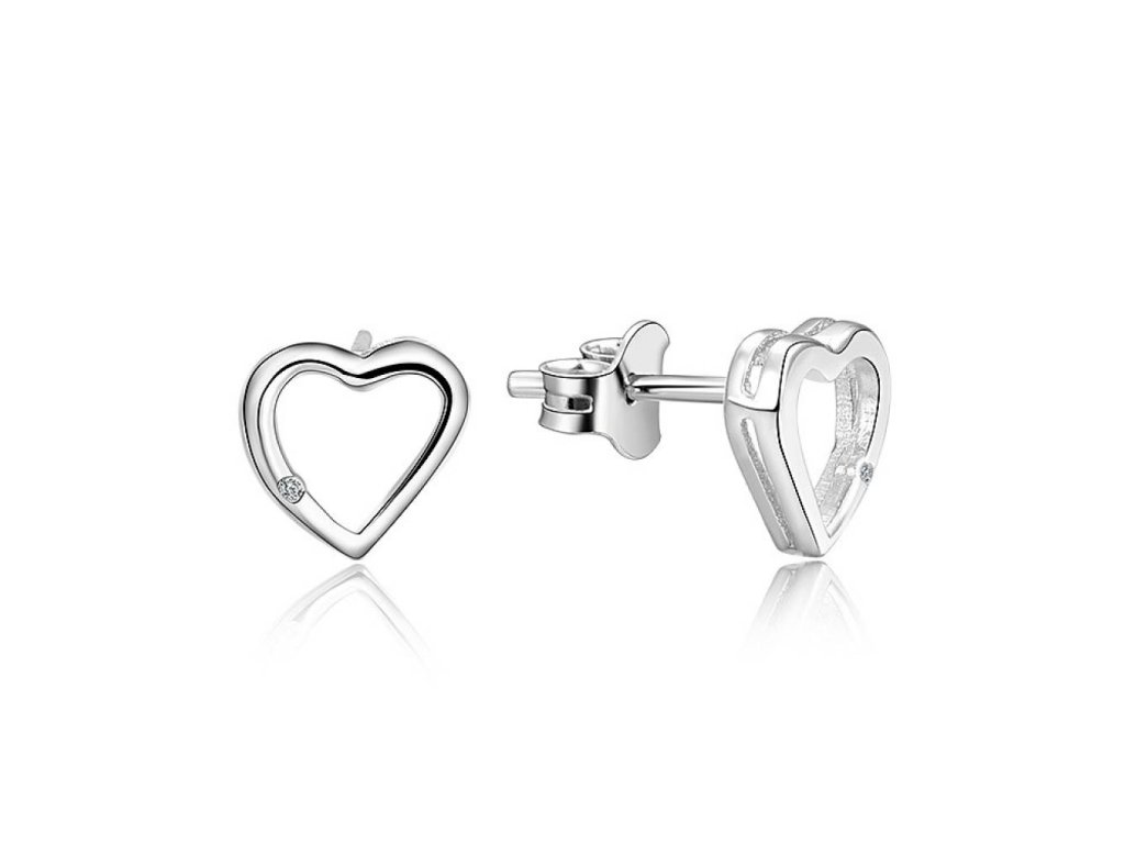 Strieborné náušnice srdiečka s maličkým jemným čírym zirkónom E0002709