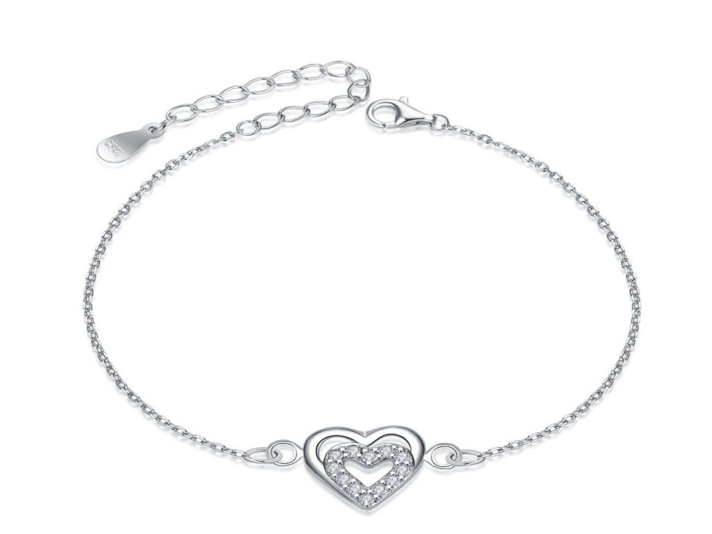 Strieborný náramok s dvojitým srdiečkom zdobeným čírymi zirkónmi B0000491