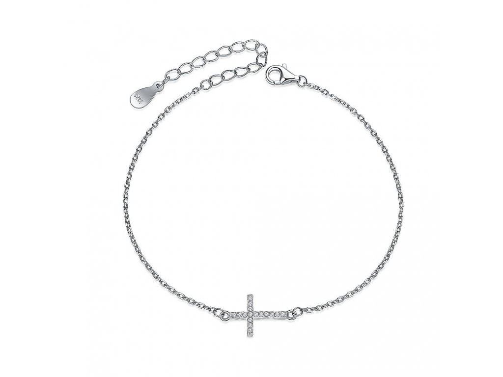Strieborný náramok s krížikom zdobeným čírymi zirkónmi B0000472