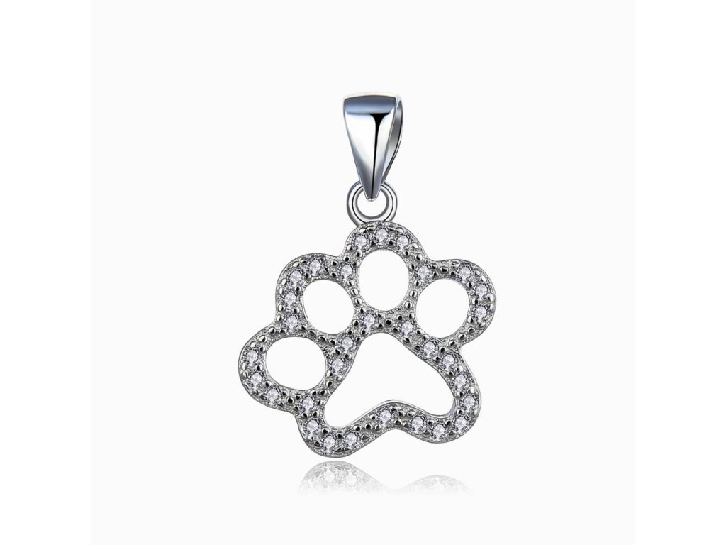 Dámsky strieborný prívesok labka zdobený čírymi zirkónmi zo striebra je dodávaný v darčekovej krabičke.