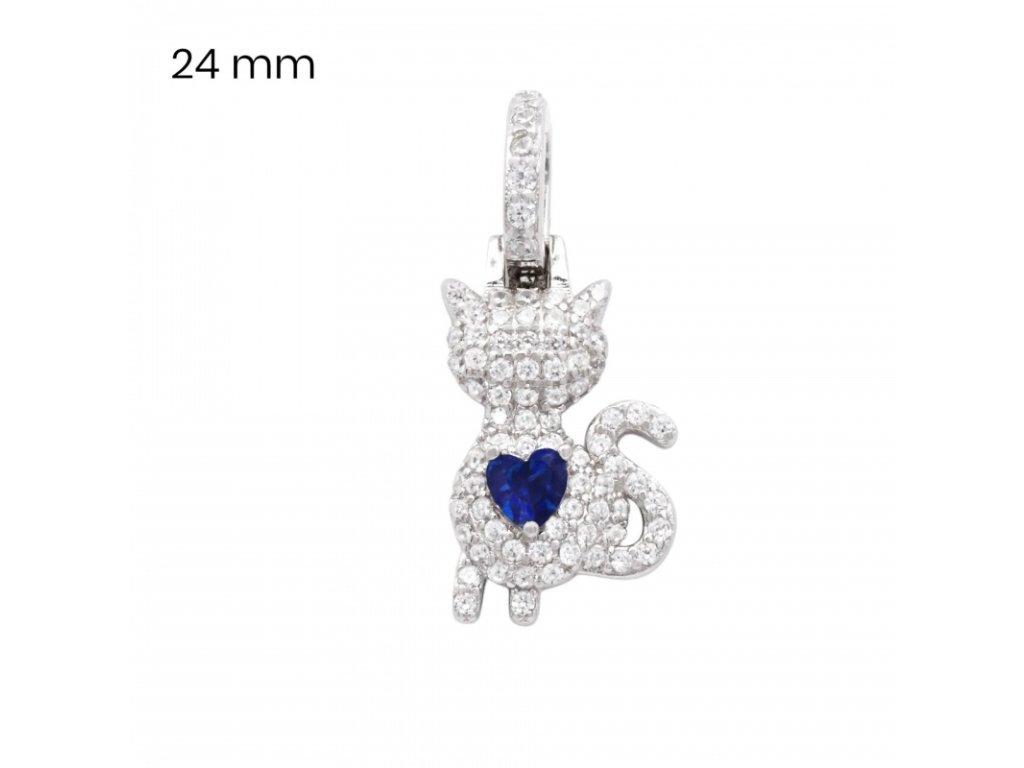 Dámsky strieborný prívesok mačka s veľkým modrým a malými čírymi zirkónmi zo striebra je dodávaný v darčekovej krabičke.