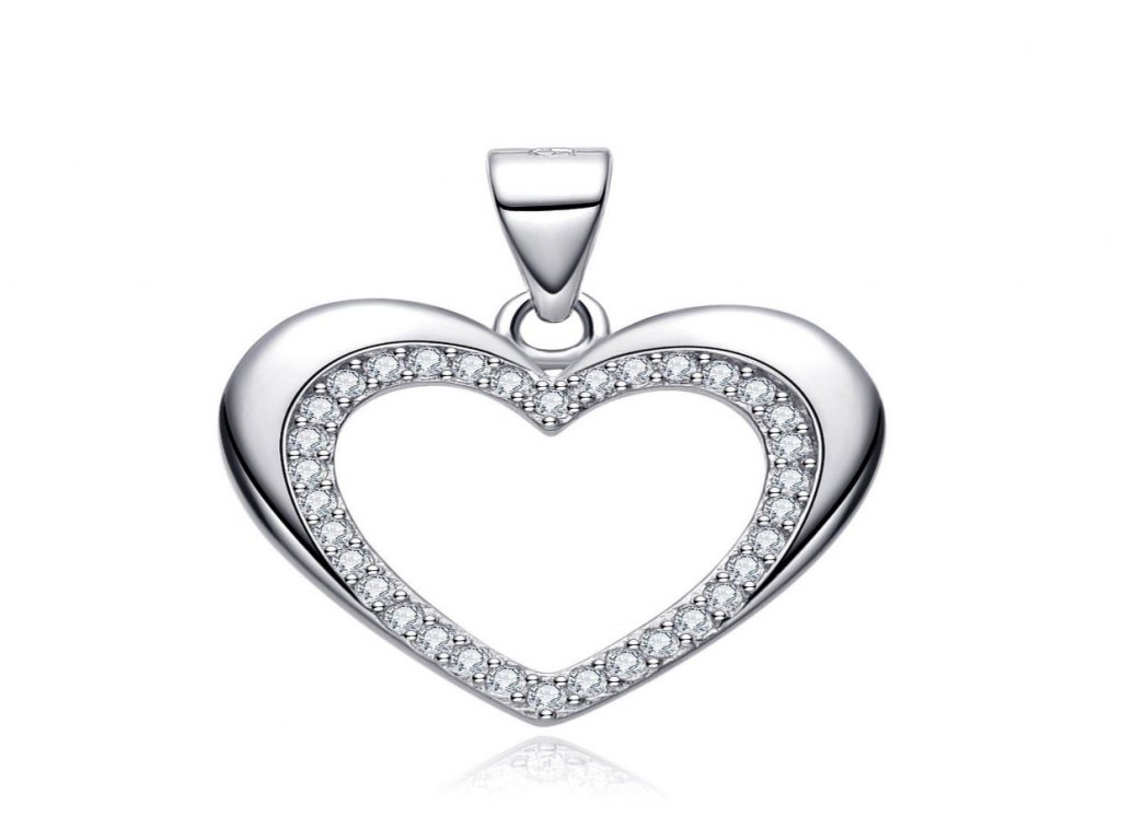 Dámsky strieborný prívesok srdiečko zdobené čírymi zirkónmi zo striebra je dodávaný v darčekovej krabičke.