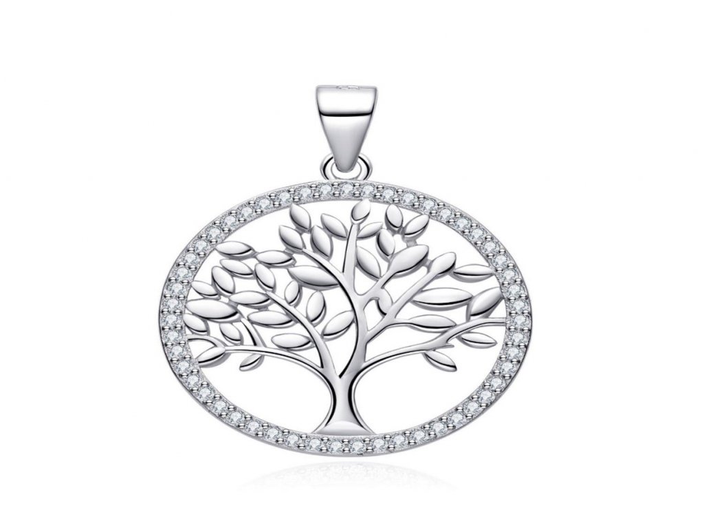 Dámsky strieborný prívesok strom života zdobený čírymi zirkónmi zo striebra je dodávaný v darčekovej krabičke.