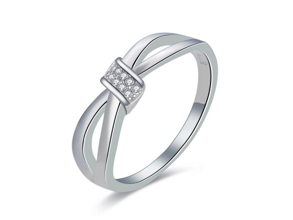 Dámsky strieborný prsteň s malými čírymi zirkónmi dostupný vo viacerých veľkostiach je dodávaný v darčekovej krabičke.