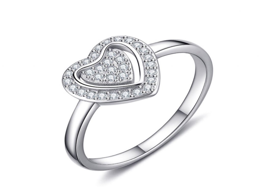 Dámsky strieborný prsteň so srdiečkami s malými čírymi zirkónmi dostupný vo viacerých veľkostiach je dodávaný v darčekovej krabičke.