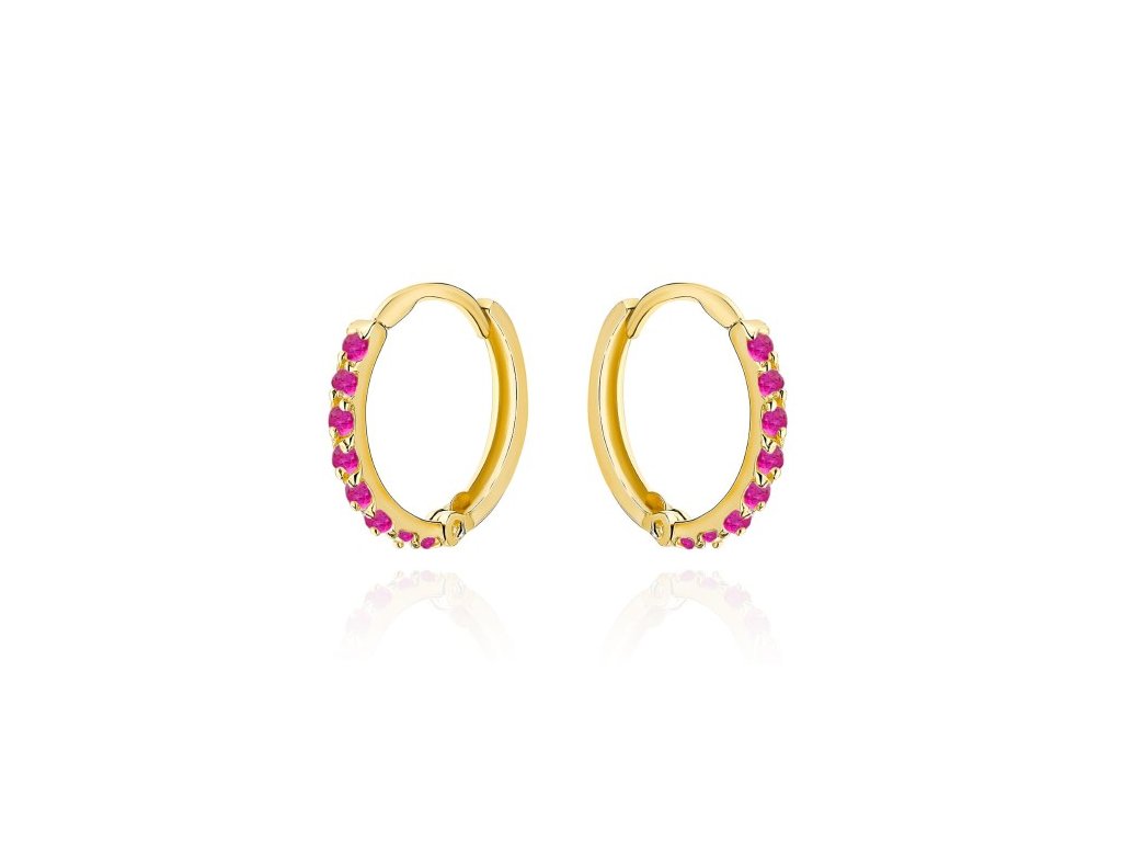 Zlaté kruhové náušnice osadené fuchsiovými kamienkami